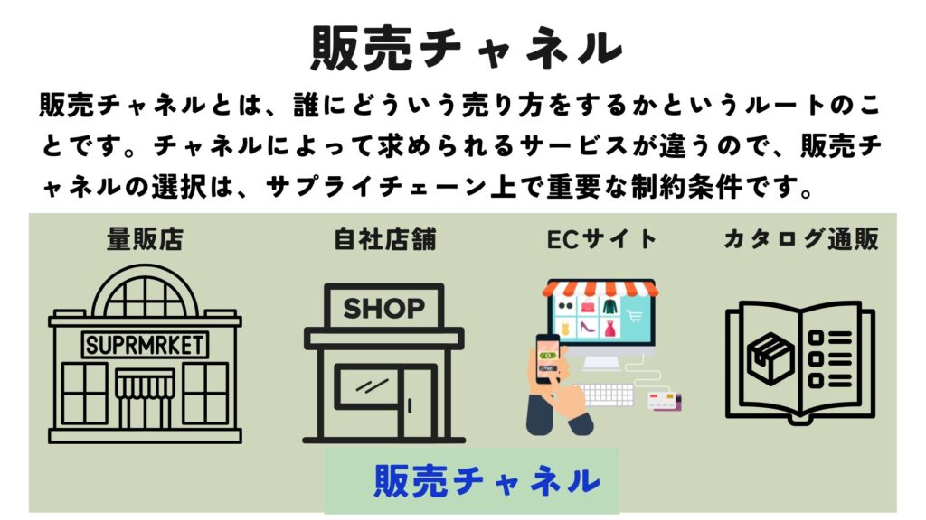 「どのチャネルを使うか」という選択が、商品を効率よく、そして確実に届けるためのカギになります。チャネルの選び方次第で、在庫の持ち方や流通のスピード、コスト、さらには顧客満足度まで大きく変わってしまうのです。